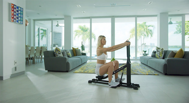 The machine requires no tools for assembly and folds down easily to fit under most beds and couches. Our recommended workouts average ten minutes a day so commiting is easy.